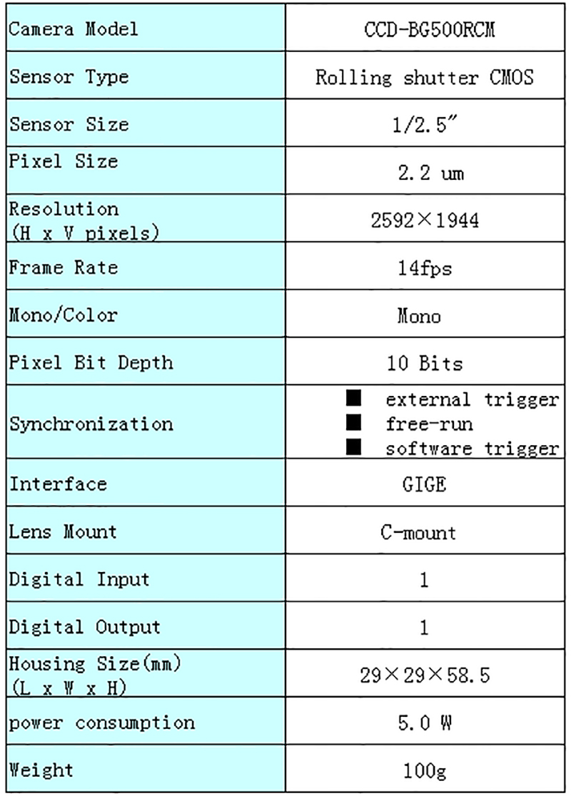 CMOS芯片工业相机CCD-BG500RCM